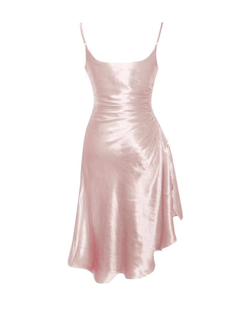 Who doesn’t need a flirty addition to their wardrobe? Montego is just that piece. This slinky slip dress is cut from a none stretch blushed colored silk and features adjustable ruched sides and straps. With a side gathered and slit, Montego can be worn dressed up with heels or dressed down with this seasons trainers.