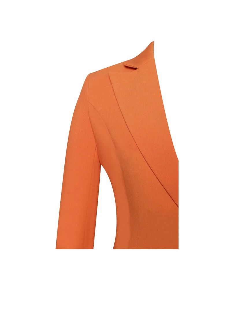 Add a pop of color to your wardrobe this season with the stunning Freya. Cut in a bright orange woven fabric, this blazer-style minidress is cut close to the body to accentuate your cures. With peak lapels, long sleeves and crystal embellishment this blazer dress is far from anything you’ve seen. Pair with an orange heel, because who said bright colors were only for the summer!