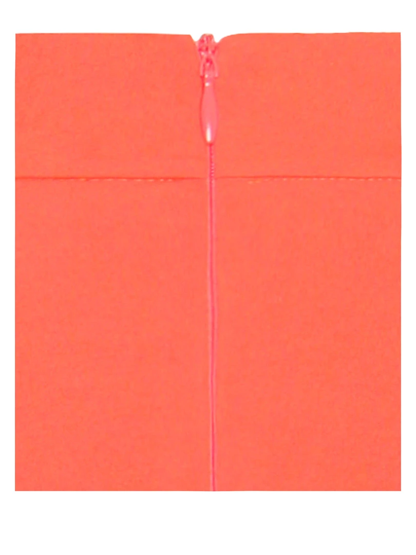 Stay ready with this asymmetric cutout crepe dress. The orange color looks perfect with every skin tone and body hugging stretch crepe shows off your perfect curves. Add some rings and arm accessories for this weekend worthy look.