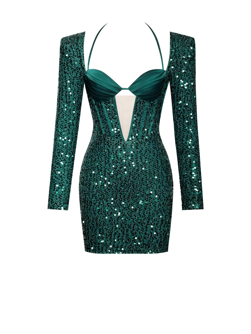 Miss Circle Melina Emerald Green Long Sleeve Sequin Dress Dresses
