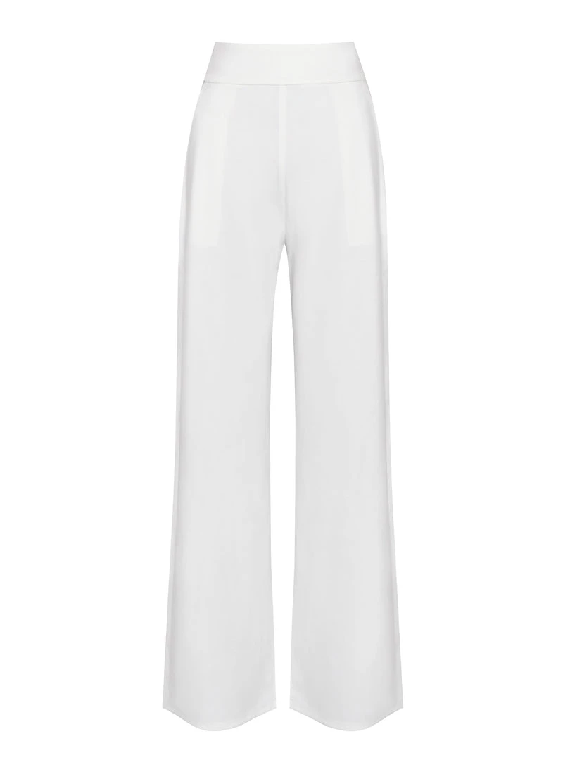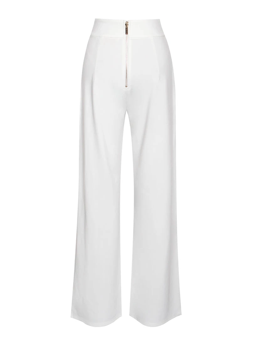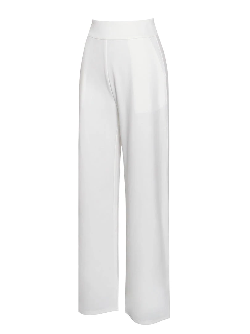 Add flare to any look with these white wide leg trousers . Stretch crepe and high waisted these pants will do any outfit justice and definitely keep you in trend . Pair it with our new romantic corset top for a sexy laced finish .