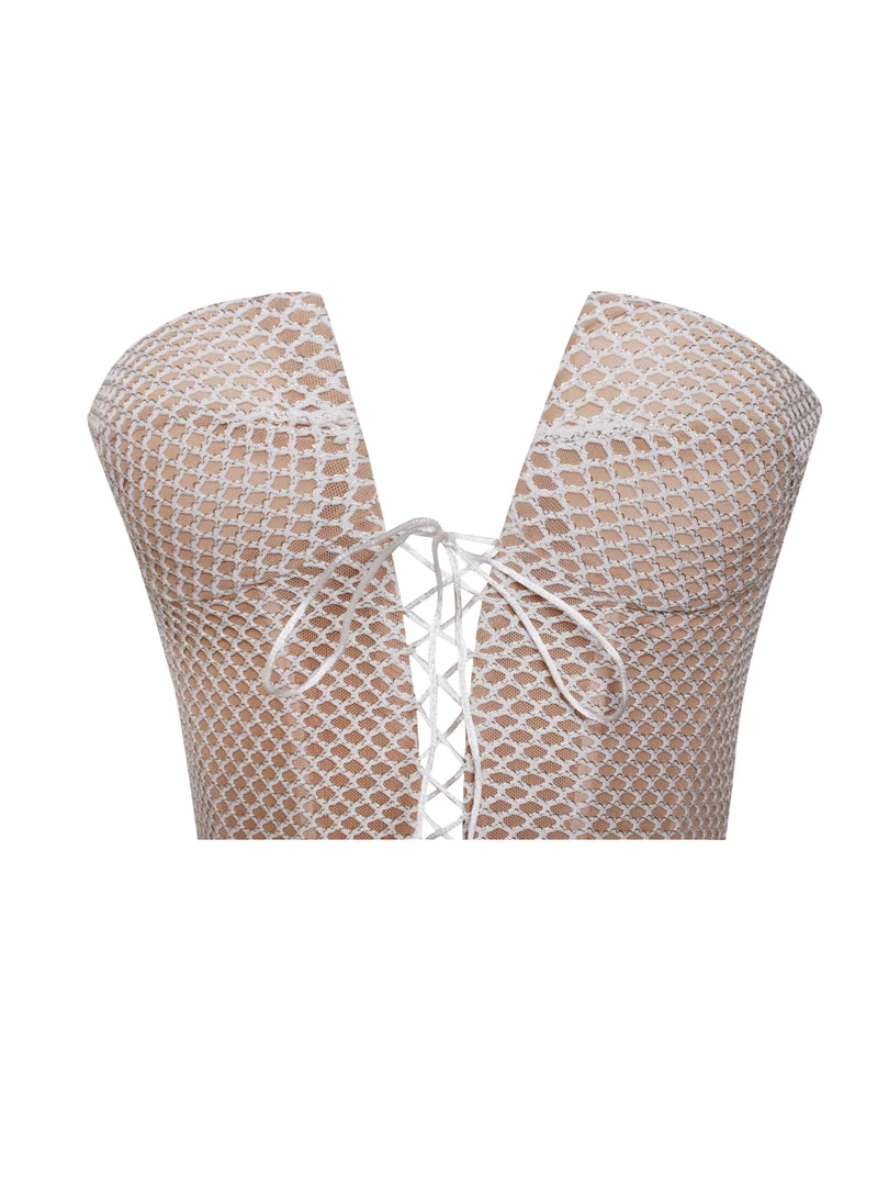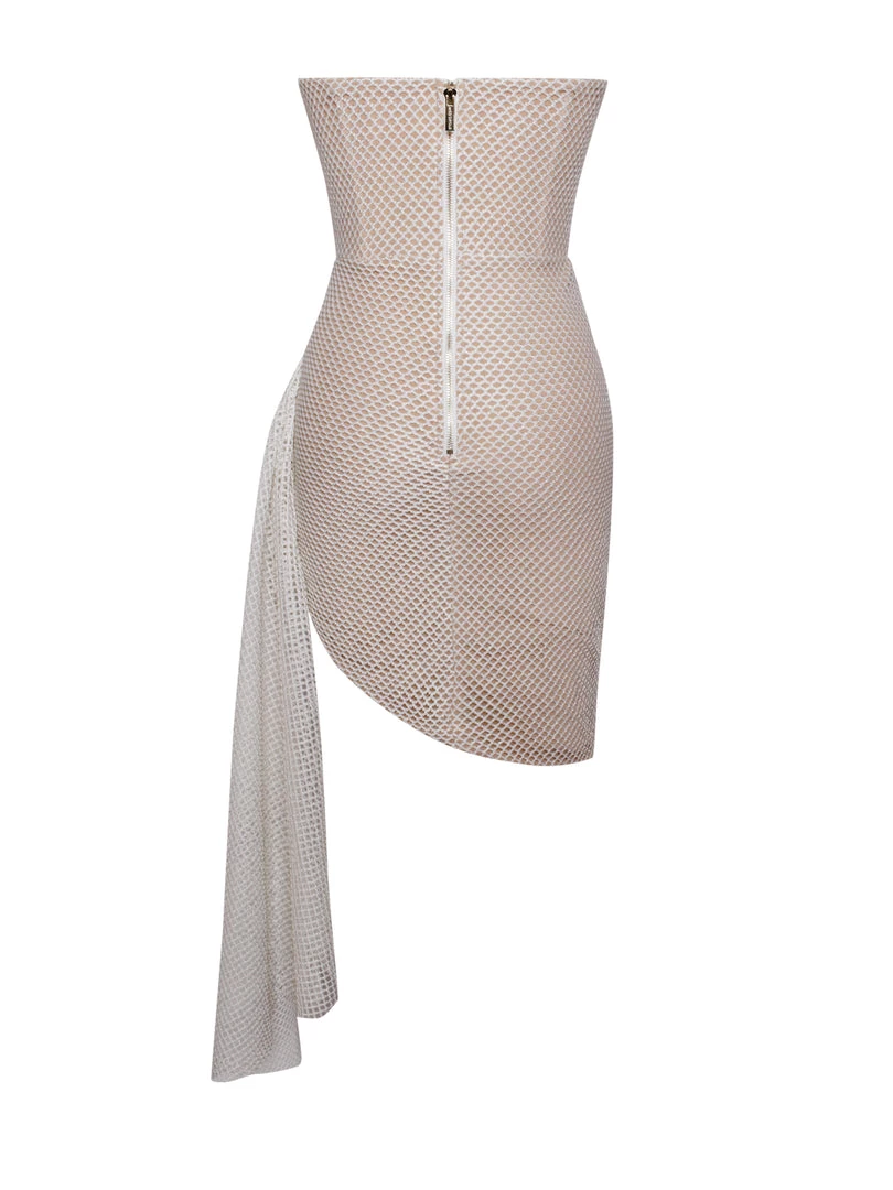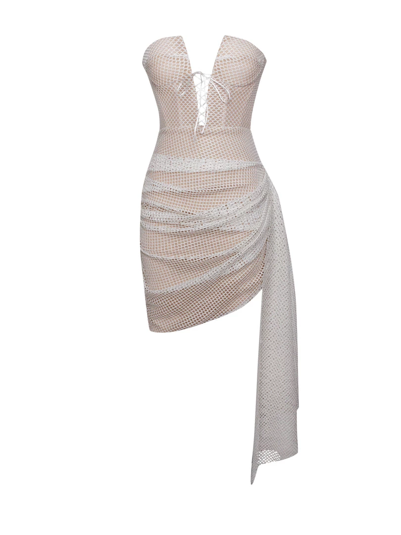 Get ready to wow in this stunning one-of-a-kind mini dress. Made from our new metal mesh fabric, Lexie features a list of unique details. From the lace-up bust to the figure-hugging corset, and let’s not forget the gathered draping skirt, this design is a wardrobe must-have. Finish off this look with a summer tan and your favorite accessories.